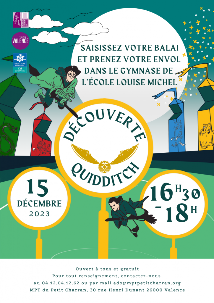 Amis passionnés de Quidditch et curieux de magie, préparez-vous à vivre une expérience ensorcelante le vendredi 15 décembre de 16h30 à 18h dans le gymnase de notre école. 🏰🧙♂️