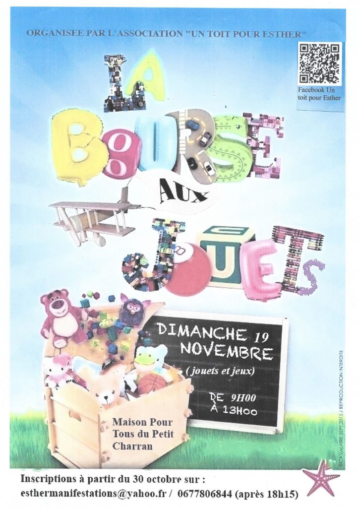 Événement à ne pas manquer ! La Bourse aux Jouets organisée par l’association « Un Toit pour Esther » se tiendra à la MPT du Petit Charran le 19 novembre. 🧸🚗 📅 Date : 19 novembre 🕒 Heure : 9h à 13h 📍 Lieu : MPT de Petit Charran C’est l’occasion parfaite de dénicher des jouets d’occasion à des prix incroyables. De plus, chaque achat contribue à soutenir une bonne cause.