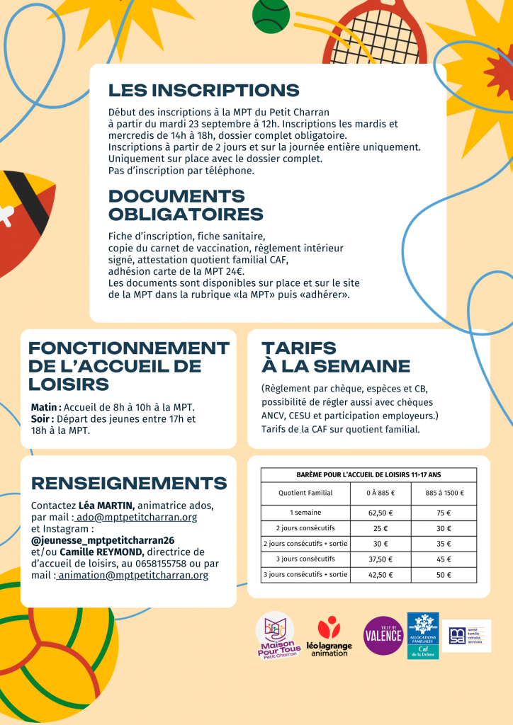 Inscriptions et réservations au secrétariat un mois avant la période de vacances.