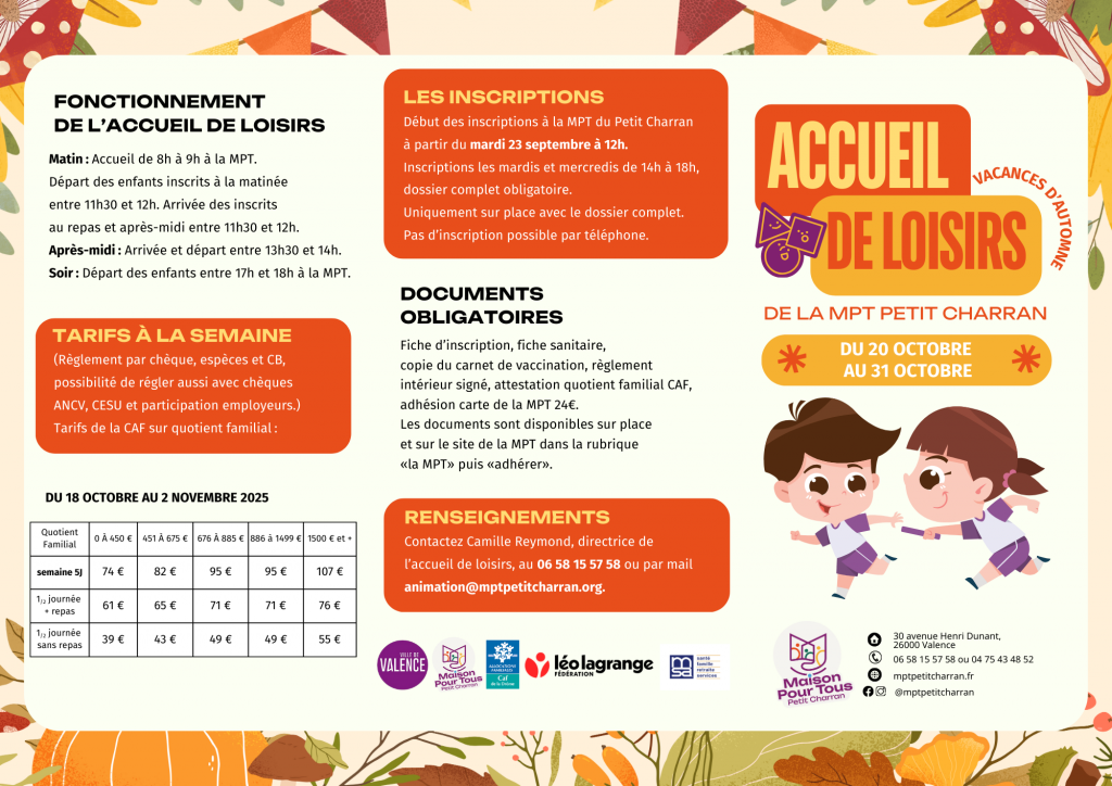 Accueil de loisirs pendant les vacances scolaires : Priorité aux inscriptions à la semaine, puis à la journée ou demi-journée en cas de places disponibles.