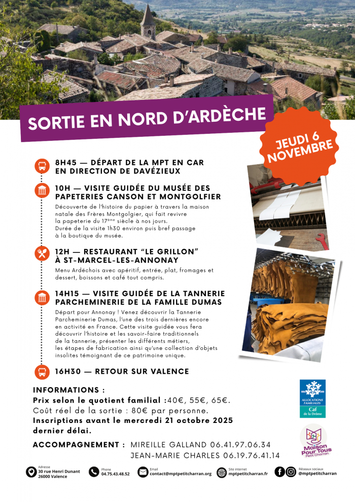 👉 Informations et réservations : ☎ 04 75 43 48 52 – 📧 contact@mptpetitcharran.org