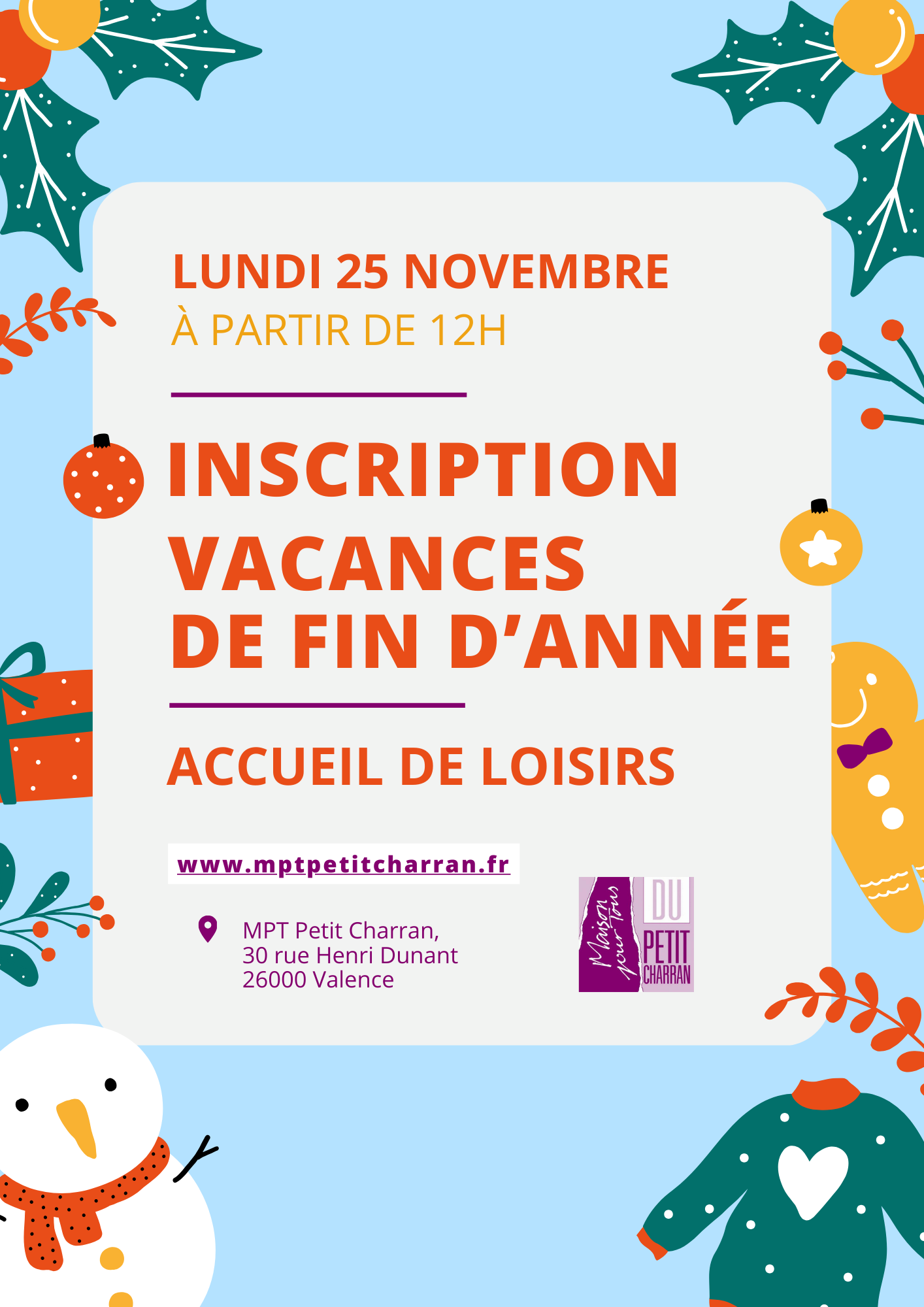 Les inscriptions pour l’accueil de loisirs des vacances de fin d’année seront ouvertes à partir du 𝗹𝘂𝗻𝗱𝗶 25 novembre à 𝟭𝟯𝗵𝟬𝟬 .